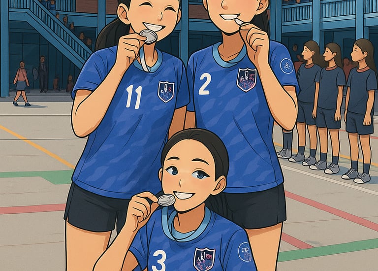Usamos uniformes con imágenes de chicas en acción, reflejando nuestra identidad y pasión por el voleibol.